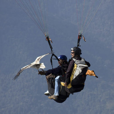 Ptaki drapieżne z Pokhary zostały wytresowane przez zespół specjalistów, którzy przed 8 laty wpadli na pomysł połączenia paralotniarstwa i sokolnictwa. Zwrócili oni uwagę na fakt, że zarówno ptaki drapieżne, jak i skoczkowie wykorzystują podczas lotu kominy termiczne - pionowe wznoszące prądy powietrza. Obserwując i naśladując ptaki, można sprawić, że skok stanie się bardziej ekonomiczny energetycznie. Nagrodą za bycie dobrym przewodnikiem są dla drapieżników oferowane na skórzanej rękawicy kawałki mięsa. Zwierzęta podlatują do ludzi, siadają im delikatnie na ramieniu, zjadają smaczne kąski i oddalają się w poszukiwaniu następnego prądu powietrza. Wrażenia niezapomniane...